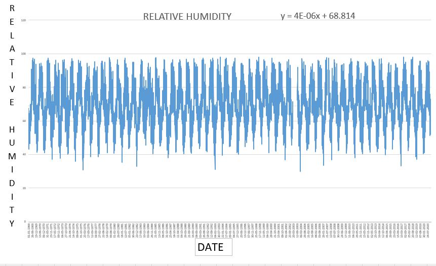 The trend line of relative humidity time graph indicates that there were only negligible variations in relative humidityinthepastfiftyyears.