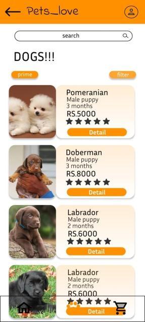 A major approach is made, but the separate pet buying app is something new and can be brought into the existing world, because nowadays people started to grow pets, according to the records, it’s estimated the US pet industry reached $99 billion in 2020. The industry is steadily growing, year by year. It grew from $97.5 billion in 2019 to $ 99 billion in 2020. That’s $1.5 billion in only one year. Petex data reveals that India is the fastest growing pet care market in the world. After the pandemic push, it is expected to grow at 14 percent annually to becomea$490millionmarketby2022.Thepetsarebeing sold in social media platforms like Instagram, facebook. But a separate app like amazon or flipkart will help the buyers to surf more, reach best shop at affordable price. This pets_love app help the users to surf pets in different regions, know their originality, origin, complete guide to care them and more features which is to be updated periodically . From the app one can search pet from their bread or from shop names which is located nearby or famouspetshops.Weprovideaplatformslike amazonor flipkart where the app is user friendly. And there will be trusted payment gateway will be provide and transaction details or receipts will be provide for the both the buyers and sellers. The payment will only done when the buyer checksthepetdirectlyand havefull heart to buythat,the transportationcostwillbemadeifthebuyerdoesnotbuy the pet. The advantage here is the buyer can make a view of more than 4 to 5 pet from a single shop. So that buyer can get direct view of pets and choose any one of the pet. Herethepets_loveprototypeisattachedbutthenamehas changedtoPer fectpetduetosomereasons.