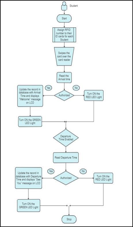 Figure 3.1 illustrates the flow of records in an attendance systembuiltentirelyusingRFIDtechnology.