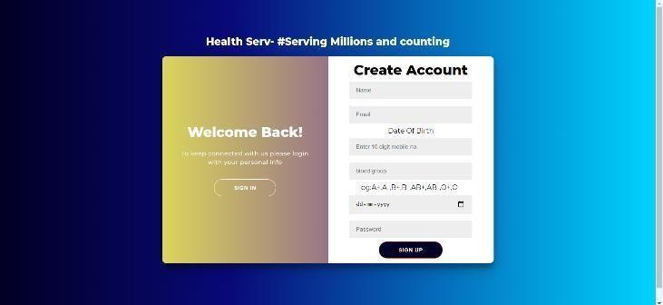 Figure 3 shows the diseases prediction system Sign Up page in which the user needs to fill its credentials which is stored in a database for further processes. It contains fields such as name, email, contact, blood group, date of birth and password.
