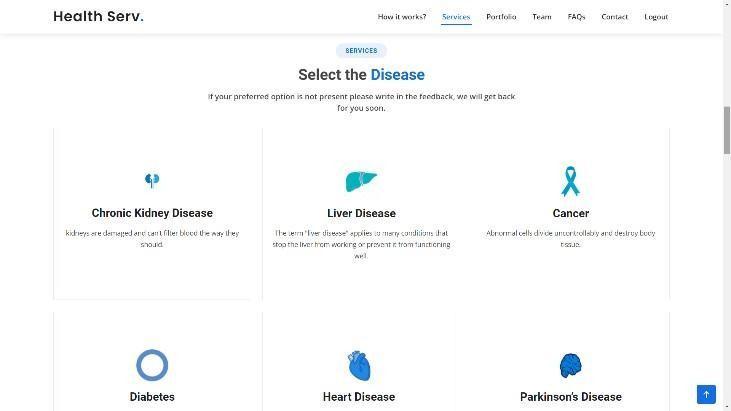 In Figure 6 these are the various diseases that are available for the users for check up using their medical data. It consistsofkidneydisease,liverdisease,breastcancer,diabetes,heartdiseaseandParkinson’sdisease.