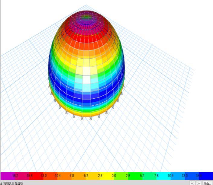 Inabovebothcondition, weconclude thatdome having larger diameter & central rise has less displacement, It is because small size & diameter domebehaveslikesegmentalarchtypedome while large size & diameter behaves like catenary arch typedome.