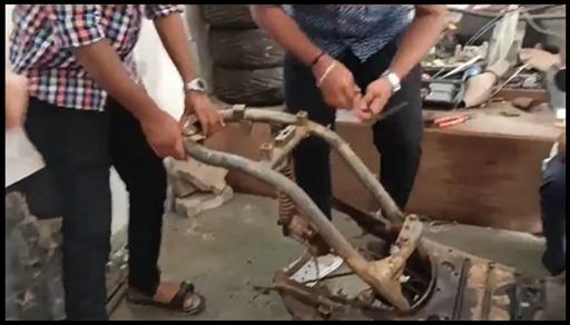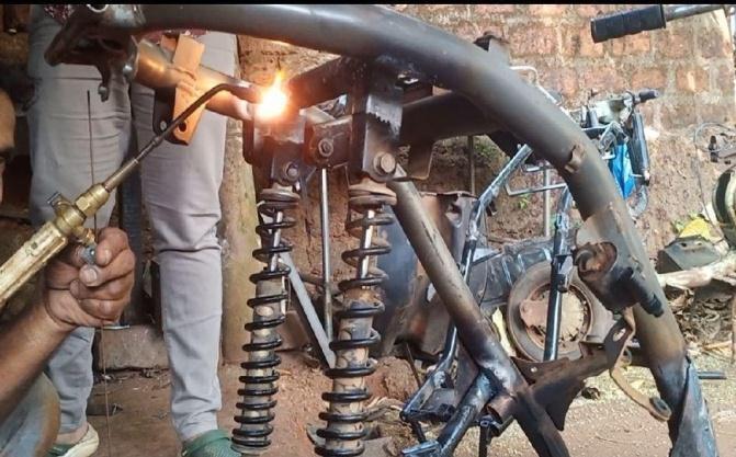 The frame is the E supporting bike's member and is subjectedtobothstaticanddynamicloads.Italsoacceptsa variety of loads, including vertical, cornering, side.thrust, acceleration,.andbrakingdip..Varioustypesofaccessories and components are strewn throughout the.frame[10]. A frame.should be strong enough to withstand all of the mentionedloads.TheExistingframeoftheI.C.Theengine scooterwaschosenbecauseitmeetsallofthecriteriaand was created by professionals for improved safety and efficiency. To fit the motor, battery, and brakes, some changesaremade[11]