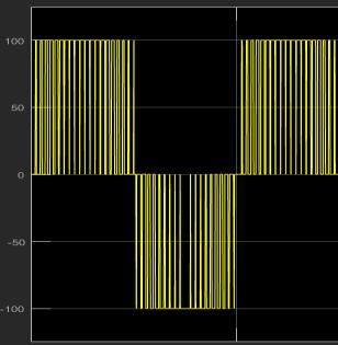 Bridge cascaded multilevel inverter s3, s4, s7, s8, s9, s11, s13 and s15 are turned on. The output voltage across the load obtainedis 2Vdc