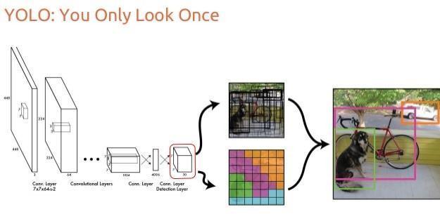You Only Look Once: Unified, Real Time Object Detection.Inthisitisintroducedanewapproachtoobject detection. The feature extraction and object localization were unified into a single monolithic block. Further more the localization and classification heads were also united. Their single stage architecture, named YOLO (You Only LookOnce)resultsinaveryfastinferencetime.Theframe rate for 448x448 pixel images was 45 fps (0.022 s per image) on a Titan X GPU while achieving state of the art mAP (mean average precision). Smaller and slightly less accurateversionsofthenetworkreached150fps.Thisnew approach, together with other detectors built on light weight Googleās MobileNet backbone, brought the vision (pun intended) of detection networks and other CV tasks onedgedeviceseverclosertoreality.