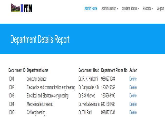Inthispageallthedepartmentdetailswillbedisplayed.