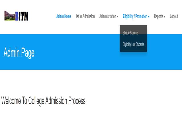 The admission process for the student is carried out by providingthelistofrequirementsandtherequirementswill bevalidatedbytheadministratorandadminwillhaveall kind of admission such ad read write modify. During admission process the admin checks eligibility of the studentifthestudentiseligiblethewebpagedisplaysthe
