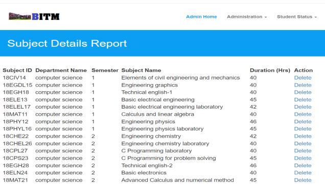 The admin can view various details of the student, departments,andbygivingthestudentregisternumberhe can view the marks details of the student. And any modification done by the admin will be immediately updatedinthereport.