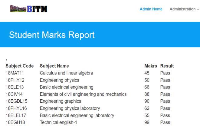 Inthispage based onthestudentregister numbermarks willbedisplayed.