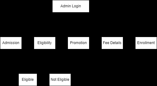 Theloginprocessforadminiscarriedoutbyprovidingthe administratorprivilegesuchasloginnameandpassword theadministratorwillhavealltypesofadmissionsuchas readwriteandmodify.Duringtheloginprocessaftergiving the expected login name and password the webpage displays thedashboardwereinthedifferentoptionsuchas admission , promotion, eligibility, fee details etc. are available