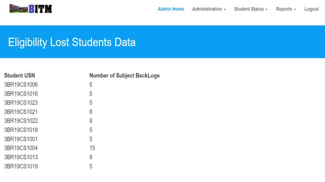 Theeligibilityprocessforthestudentiscarriedoutbythe listofrequirementsinthiseligibilityprocesstheadminwill checkalltheeligibilitycriteriaofthestudentbasedontheir previousyearmarksthatismaximumoffourbacklogsfor the promotion of next year. And only for the eligible student’sapplicationwillbedisplayed.