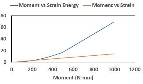 4. Apply ten different moments and measure all the values, i.e., Stress, Strain, Strain energy, Deformation