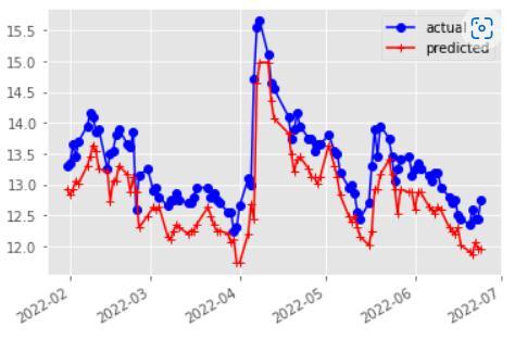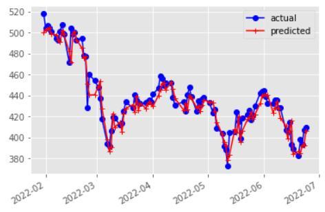 In order to obtain the forecasts for the following day, the current day's pricing is passed. To compare the outcomes from SVR and HMM, computed the MAPE and plotted the predictionsontheidenticalHMMplots.Figures3 5display the actual and forecast closing prices for the Stacks based onHMM.TheMAPEvaluesforallthreeequitiesareshown inTables2 4usingtheHMMandSVRmodels.