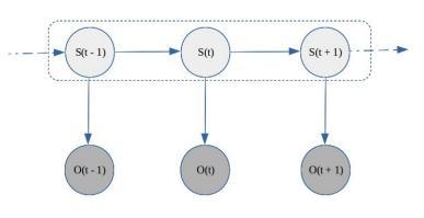 The observations in stock markets are continuous in nature and they are part of non stationary systems. AssumethatStrepresent’sthestateondaytandthat Ot is avectorwithfourelements:thedailyclose,open,high,and low. One of the presumptive states is the state of St. A typicalHiddenMarkovProcessisseeninFigure2.