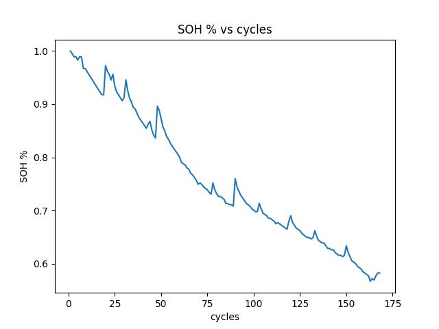 This work aims to develop an LSTM model to predict the stateofhealthoflithium ionbatteries.Thisexperimenthas achieveditsgoalofaiding,asabenchmark,theprognostic data drivenmodelforbatterydatausingmachinelearning algorithms. Based on the results from the case studies, it shows that the LSTM algorithm provides a promising outcome for predicting and modelling prognostic data, especiallyinthebatteryprognosticandhealthmanagement applications. Also, based on several advantages of data drivenmodelsoverthetraditionalphysics basedmodelsand the accuracy achieved, we believe that the traditional physics basedmodelmaybereplacedbydata drivenmodels soon,invariousfieldsandapplications.Thisfuturetrendof data drivenmodelsisinlinewiththerecentachievementof deep learning algorithms and artificial intelligence. These methodologiesarebelievedtobethemainapproachesinthe further development of data driven models. However, the accuracyofpredictionandthehigherperformanceofusing deep learning algorithms also come with the drawback of higher computational time. With rapid advancements in technology, the computational time could be substantially reduced. The future direction of this work will focus on developing a hybrid deep learning model that could be universallyapplicabletomultipletypesofprognosticdata. Due to time constraints and inaccessibility of the lab equipment,itwasnotfeasibletocreateanentiredatasetof the battery as acquiring an entire dataset would take approximately (170×4) 680 hours. Hence, there is uncertaintyinpredictingthewholenatureofthebattery’s operation based on a couple of charge discharge cycles. However, it was found that in the practically performed cycles,allthecharging/dischargingprotocolswereobserved quiteaccurately.