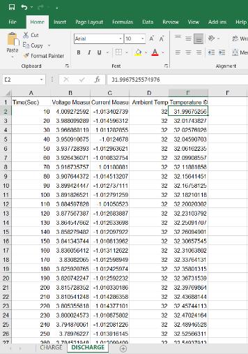 Thefollowingparameterswerecapturedduringthecharging anddischargingofthebatteries,