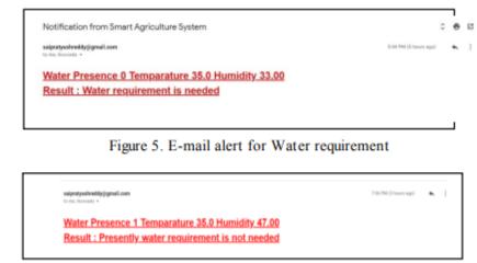 After iiapplying iithe iidecision iitree iialgorithm iito iithe iisensediidatasets,iianiioutputiicontainingiitheiidecision iitoiiwateriitheiicropiiisiimade.iiThisiioutputiicontaining iithe iidecision iiis iisent iito iithe iiusers iior iifarmers iithrough iian iiElectronic iimail ii(E mail) iiusing iithe iisimpleiimailiitransferiiprotocol.iiT