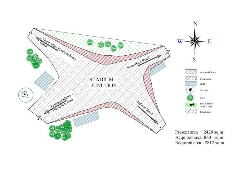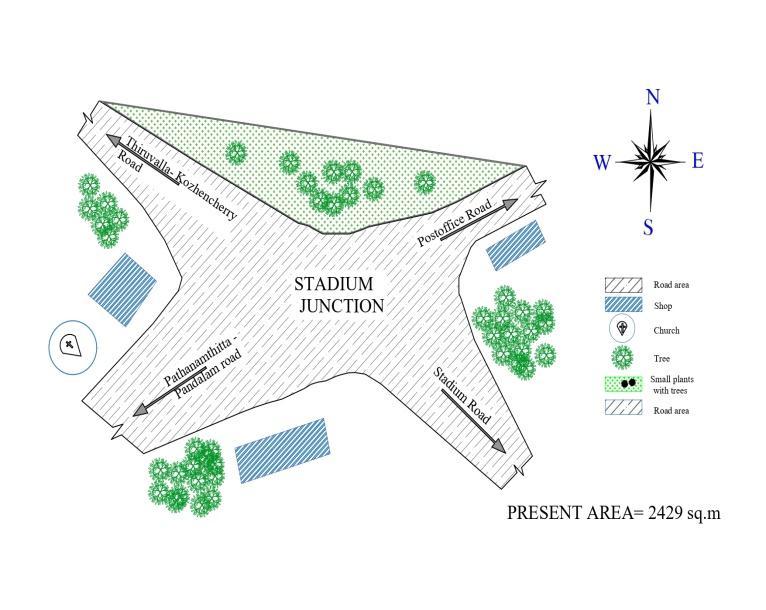 The study area is Stadium junction Pathanamthitta with a latitude 9.260N and longitude 76.780 E. The junction is an intersectionoffourroads;Pathanamthitta Pandalamroad, ring road, Thiruvalla Kozhencherry road, post office road.