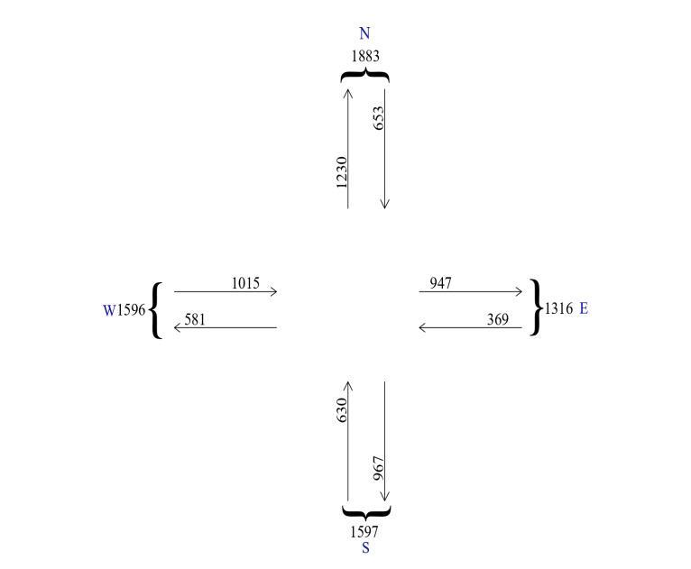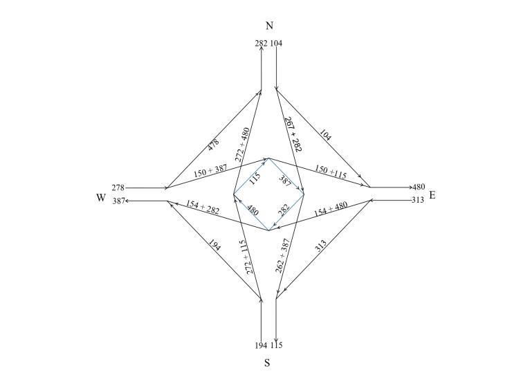 Thefollowingtableshowstheaveragetrafficvolumedata of7daysof fourroads.