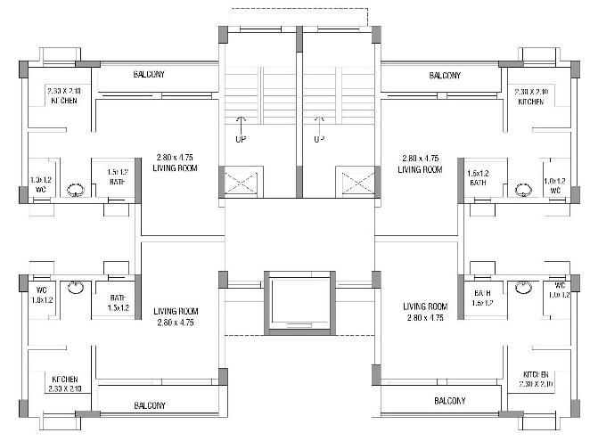 The A type consist the 4 dwelling units per floor, which is maximum dwelling units can be provided in an affordable housing. The passage is provided is provided with the minimum of the 1.55m. The Building have the 1 lift and onecasestairwithtreadof 250mmandriserof150mm. thewholebuildingiskepttheminimumdimensiontokeep thebuiltuparealow