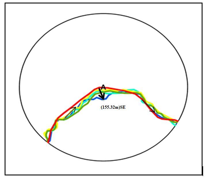 At point F, the river path shifted around 110.17 meters in a south west direction from 1975 to 2020. Poin F is located near Galatha village in Fatehpur district. There are some agricultural fields present at F point and these agricultural fields will be affectedinthenearfutureifthemigratorytrendcontinues.