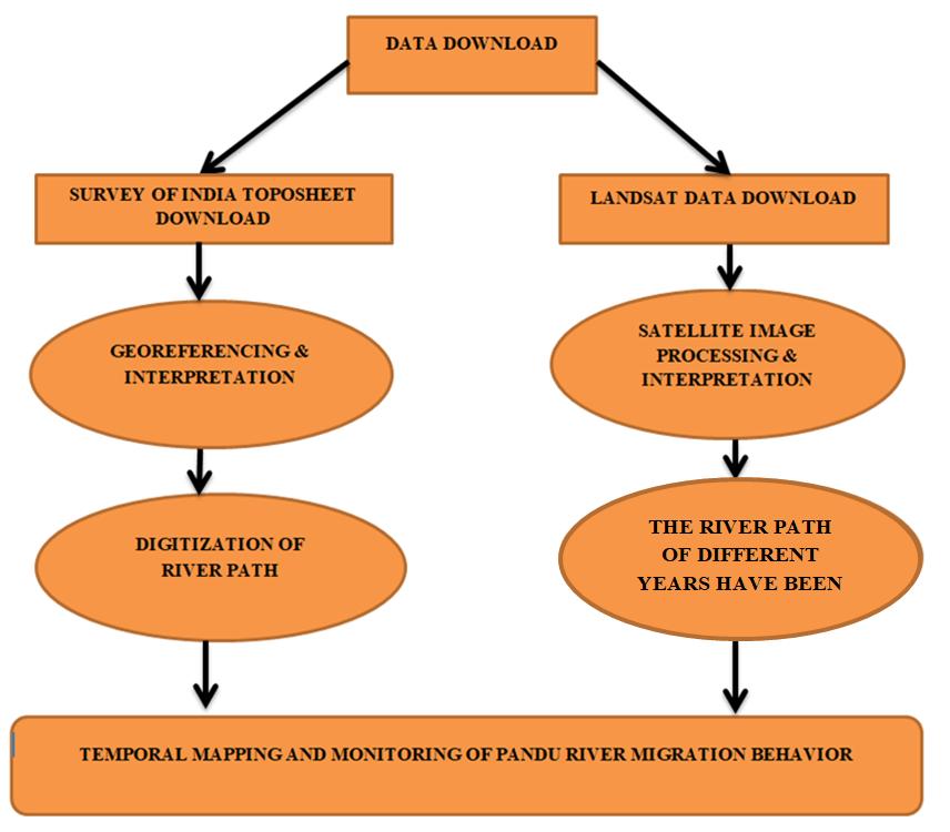 Differentwaysformappingandmonitoring ofrivermigrationshavebeenincludedinthepresentstudy.Figure3depictsthe methodology workflowusedinthisresearch. Fig -3: Flow diagram of methodology