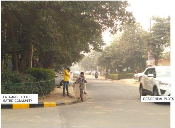 Surroundings: The gated community is surrounded by plotted residential development on three sides and by a majormovementcorridoronone.Theadjacentresidential developmentcomprisesofdoublestoreyhouseswhichare builtonlargeplotsizesvaryingfrom318to455sq.metres. The gated community is governed by the principle of exclusivityasattheentranceonefindsboombarrierandto enteroneeitherhastoberesidentofthecommunityorhas to be a friend/acquaintance of the resident. The gated communityisboundanddefinedbyhighboundarywallson the four sides which are visually permeable but not physicallyasshowninfigure4