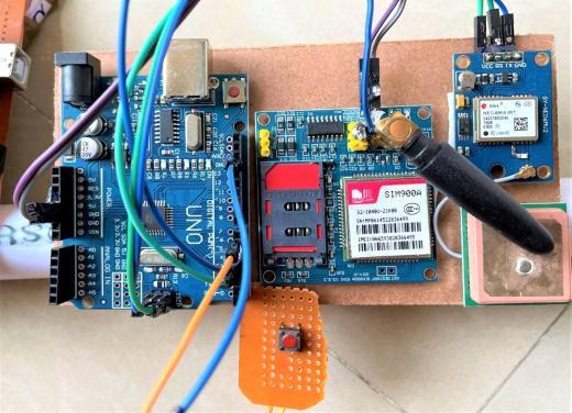 The device also has GPS and GSM functionality to alerts family members in case emergencies. The circuit has a Arduino UnoR3asaprocessingcomponent.AGPSandGSMboards.ApowersupplyforregulatingpowerdeliveryandaSOSbuttonfor sendingalerts.AsshowninFig5