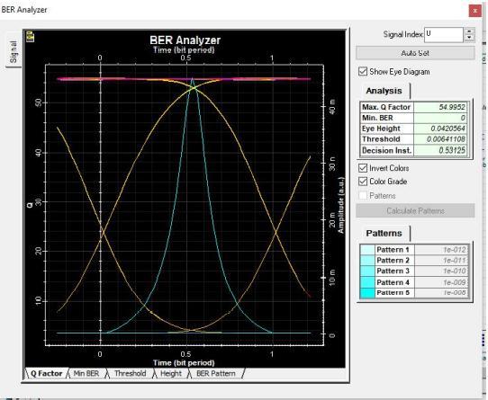 It can estimate the BER using different algorithms such as Gaussian and Chi Squared and derive different metrics from the eye diagram, such as Q factor, eye opening,eyeclosure,extinctionratio,eyeheight,jitter,etc. It can also take in account Forward Error Correction, plot BERpatternsandestimatesystempenaltiesandmargins.