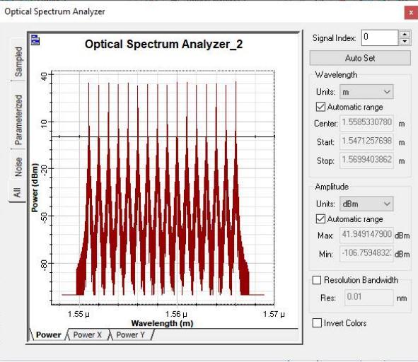 The16x16FreeSpaceOpticalchannelconsistingof 16 copies of the modulated signal transmitted through 16 different FSO channels at a varying range and attenuation valuesareshowninfigure6.