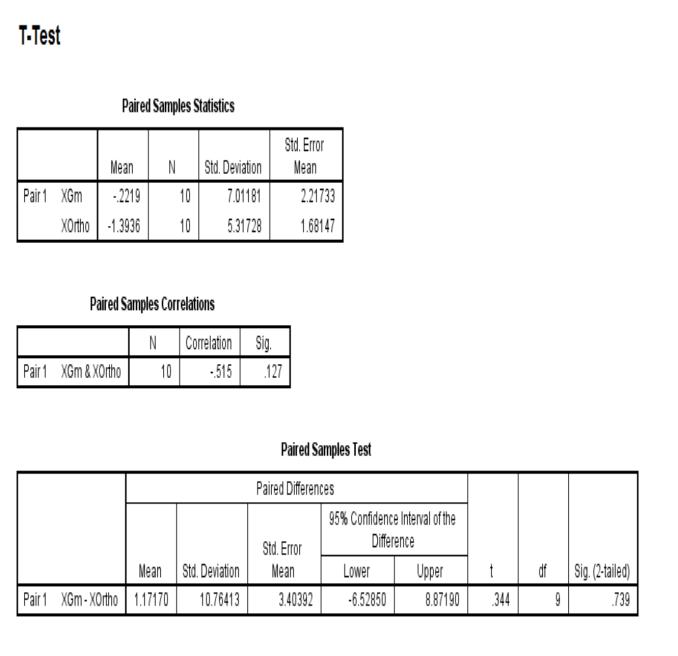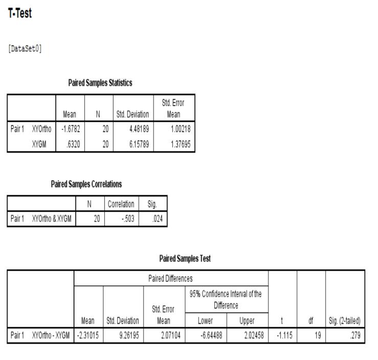 The result analysis is also shown by the help of the mathematicalstatisticalanalysiswitht test isshowninthe table and also the highest and lowest values of the differencesisalsoshownbythetabulatedformtheX ortho andY orthooftheimagesisshown