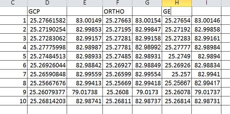 Table5:TheoverallanalysisoftheGoogleEarthpoints withrespecttotheGCP’s