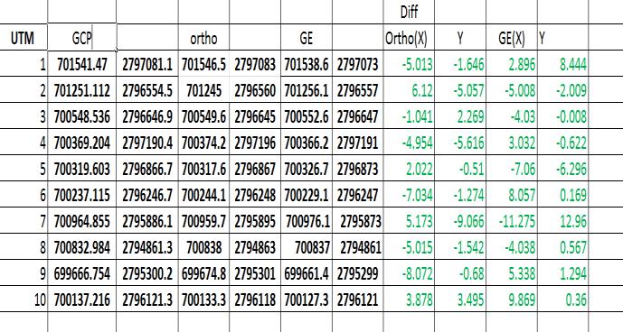Table4:TheXpointsoftheOrthoandGoogleEarthpoints anditsanalysisisdone.
