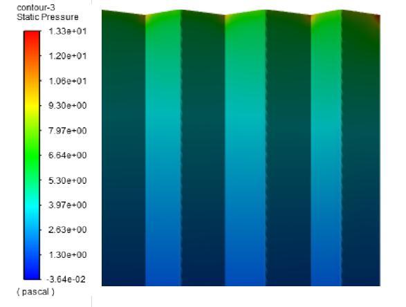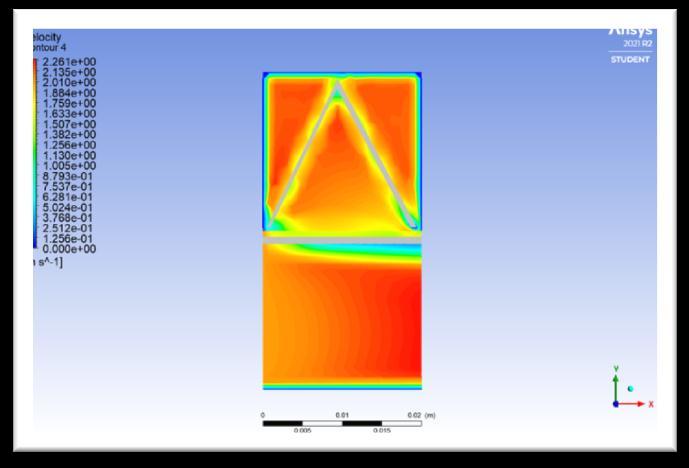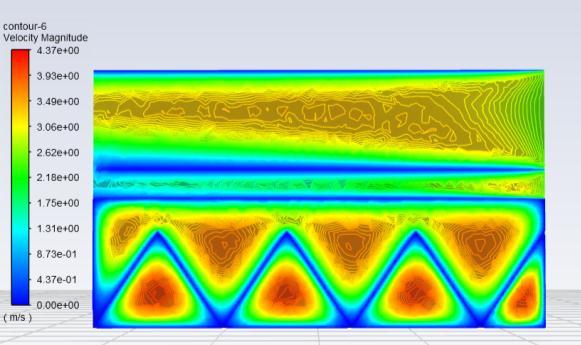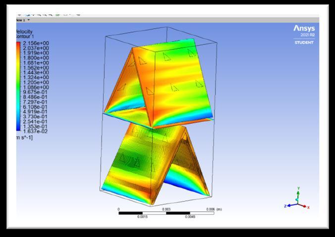 After obtaining results, from Taguchi analysis the model whichgavethehighestthermaleffectivenesswasdesigned andnumericallyverified.Nowinordertofurtheroptimize the design and size , a new model with triangular perforationswasdesignedandCFDANALYSISwascarried onit.Theresultsbelowwerehenceobtained.