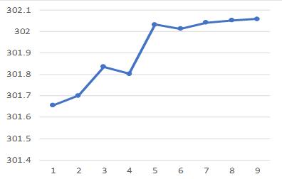 The fresh air outlet temperatures obtained for 9 different modelsarerepresented below.Themaximumdecrease in temperature was for the model 1 and the model 7 , 8 ,9 showedsimilardecreasepattern.