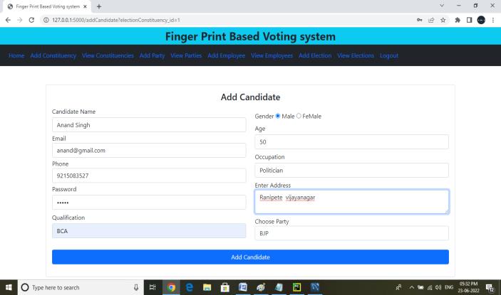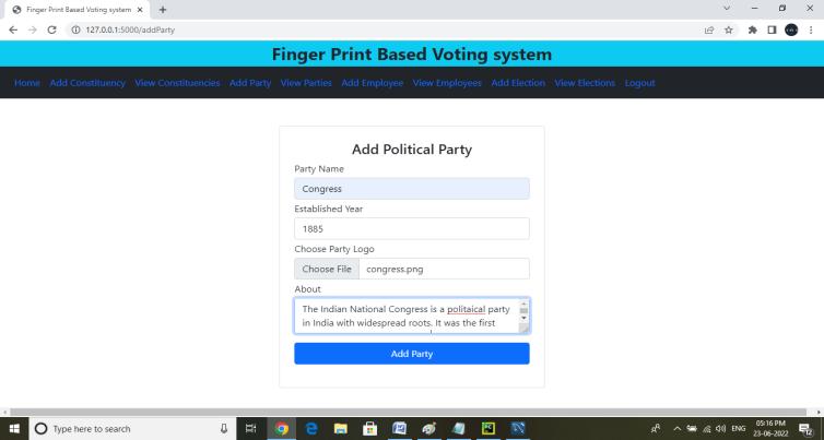 Fig 4.5: Add Political Party