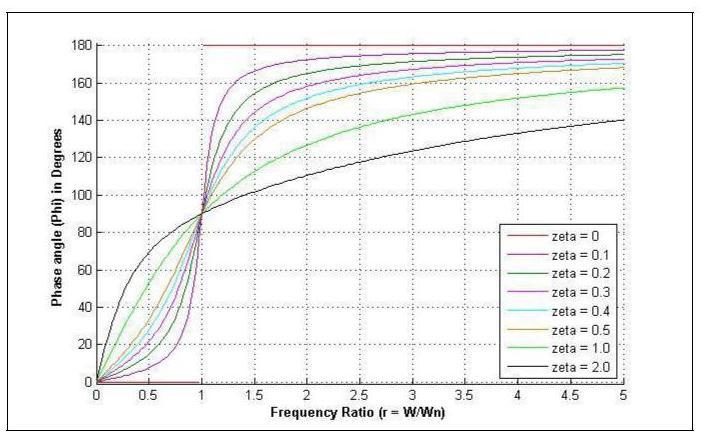 Figure 7 shows phase response of system subjected to centrifugalForcetypeexcitation.Foroursystemfrequency ratio is greater than 4 so phase angle should be greater than120°