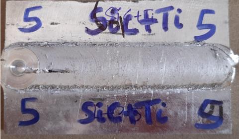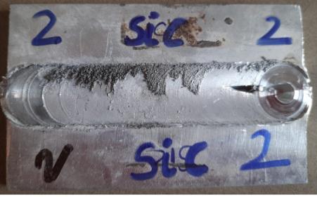 The grooves are filled using powders. The three plates arefilledwith15%volumeofTiO2,15%volumeofSiCand 15%volumeofTiO2+SiCrespectivelyassowninfigure4.