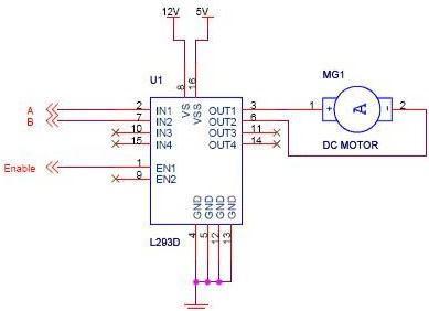 This high current signal is used to drive the motor. The L293DhasaninbuiltH bridgedrivercircuit.Intheirnormal modeofoperation,DCmotorscanbedrivenbothforward andbackwardsimultaneouslyasshownintable2.