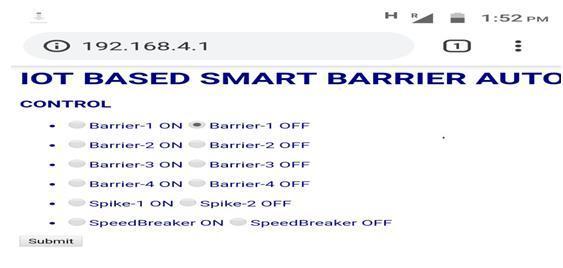 Figure18explainstheRoadblocker,SpeedBumpsandTyre Killer position are ON or OFF. This monitoring is done by connectingtheIoTWi FiwithIPaddress.