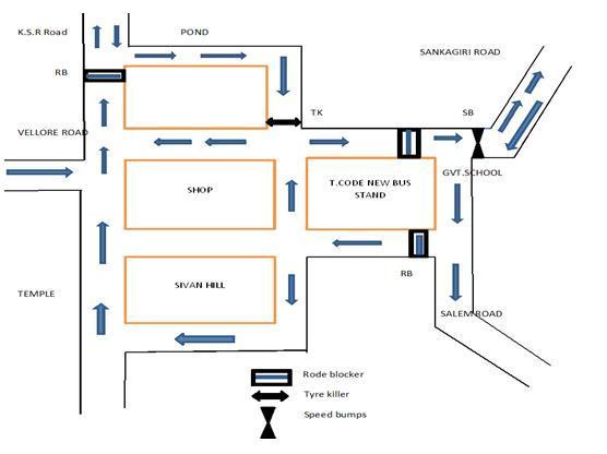 Figure17representedtheRouteMapfortheProposedWork andplacing the Road Blockers, Speed Bumps, Tyre Killers, LCDDisplayandAlarm.