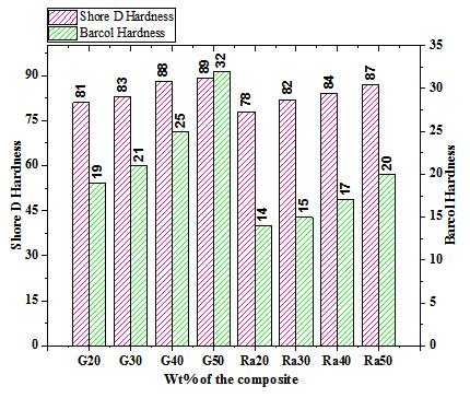 FIGURE 5. ShoreDandBarcolhardnessofcomposite
