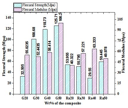 FIGURE 3. (a)Effectofflexuralpropertiesofcomposite (b)Percentageelongationofcomposite