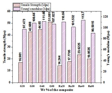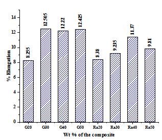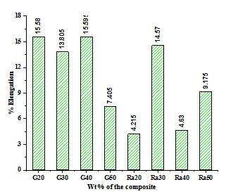 FIGURE 2. (a)Effectoftensilepropertiesofcomposite(b) Percentageelongationofcomposite