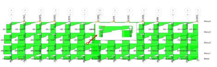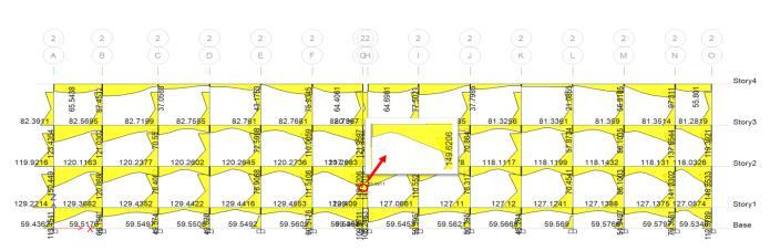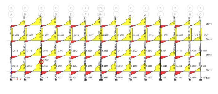 Thebendingmomentforceobtainedisat11.165kNatstorey 3.