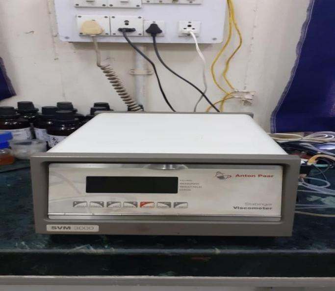 In order to calculate the kinematic viscosity, dynamic viscosity and density of the sample must be known. SVM 3000 machine were used for measuring dynamic viscosity and density which is based on a modified Couette principle in which an inner measuring bob rotates very slowly in a rapidly rotating outer tube. Kinematic viscosity (mm2/s) was calculated using dynamic viscosity and densityformula.IR Prestige21machinewereusedforFTIR analysisoflubricants.