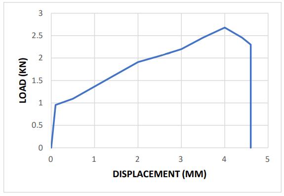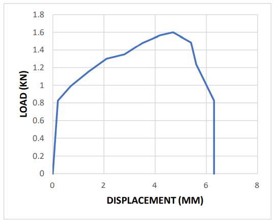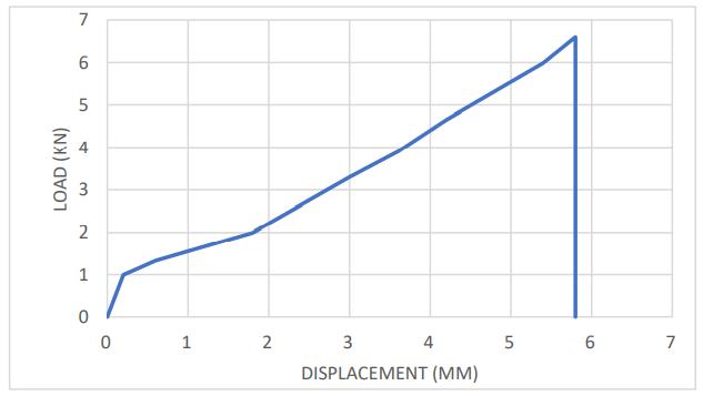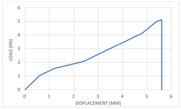 The results showed that when the load increases, the displacement increases as well. There is a break after the 6.3mm displacement.ThemaximumdisplacementobservedinSample2is6.3mm.