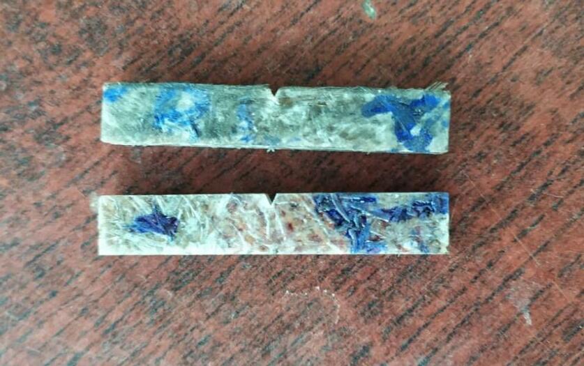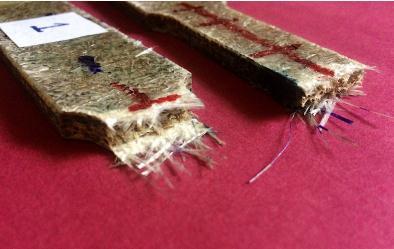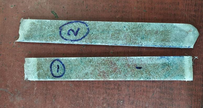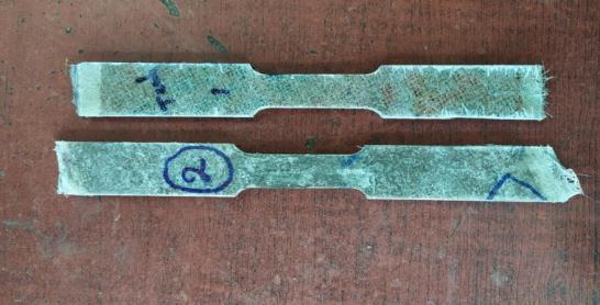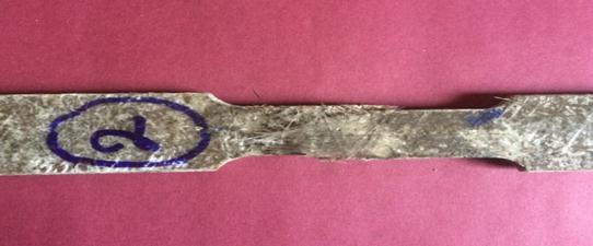 Fiber fracture and pull out, as well as fibre tearing, are visible on the tension cracked surface. We observed no stretching or pullingofpolyesteronthecompositesurfaceinbothsamples,howeverthereisasharpcutsurfaceduetothebrittlenature of polyesterresin.