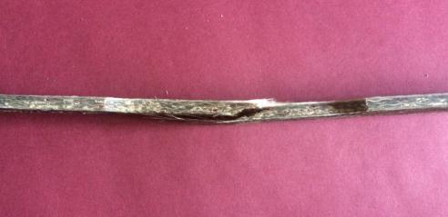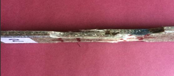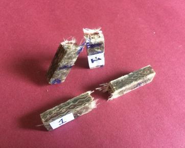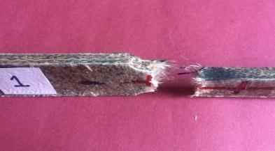 Forsample2,thispartshowsaspecimenfailureduetotheeffectofdelaminationandaserratedfracturesurfacefromfig.23 Thespecimenhasa flatfracturesurface, withthefibre pull out,fibre breaking and matrixcracking havinga dominant effect onthecompositefailure.