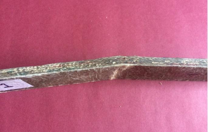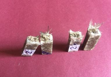 For sample 2, due to flexural load, some fibre splitting may be seen on the surface of the composite, as well assharp cuts in some areas. The brittle nature of the jute fibre in composite is defined by this. Both fibers of different orientation are participating, but shearing between fibers is taking place. Also, we can observe out of plane compression, i.e., buckling is happeningfromfigure15and20